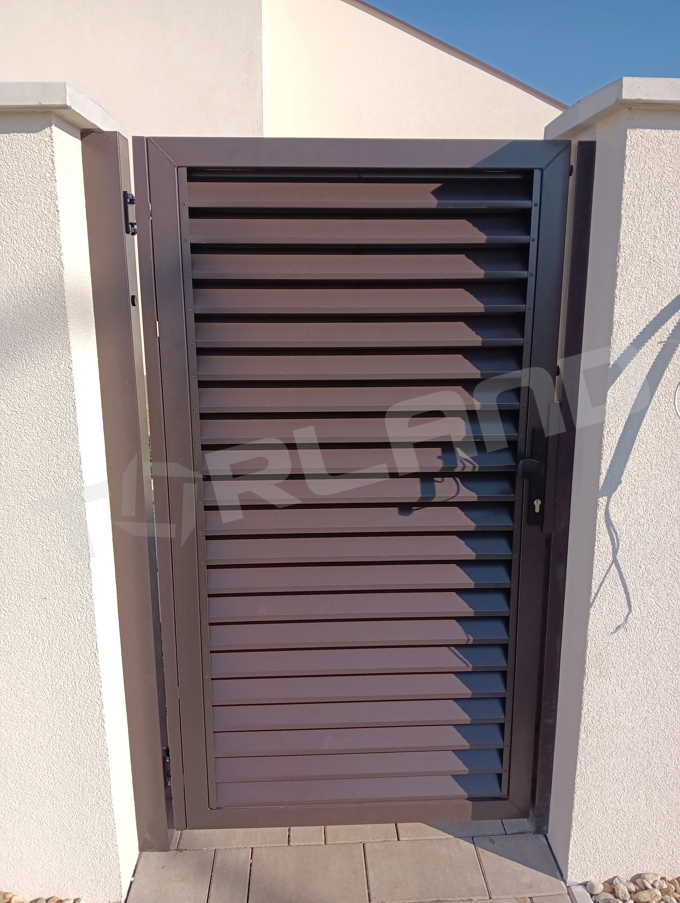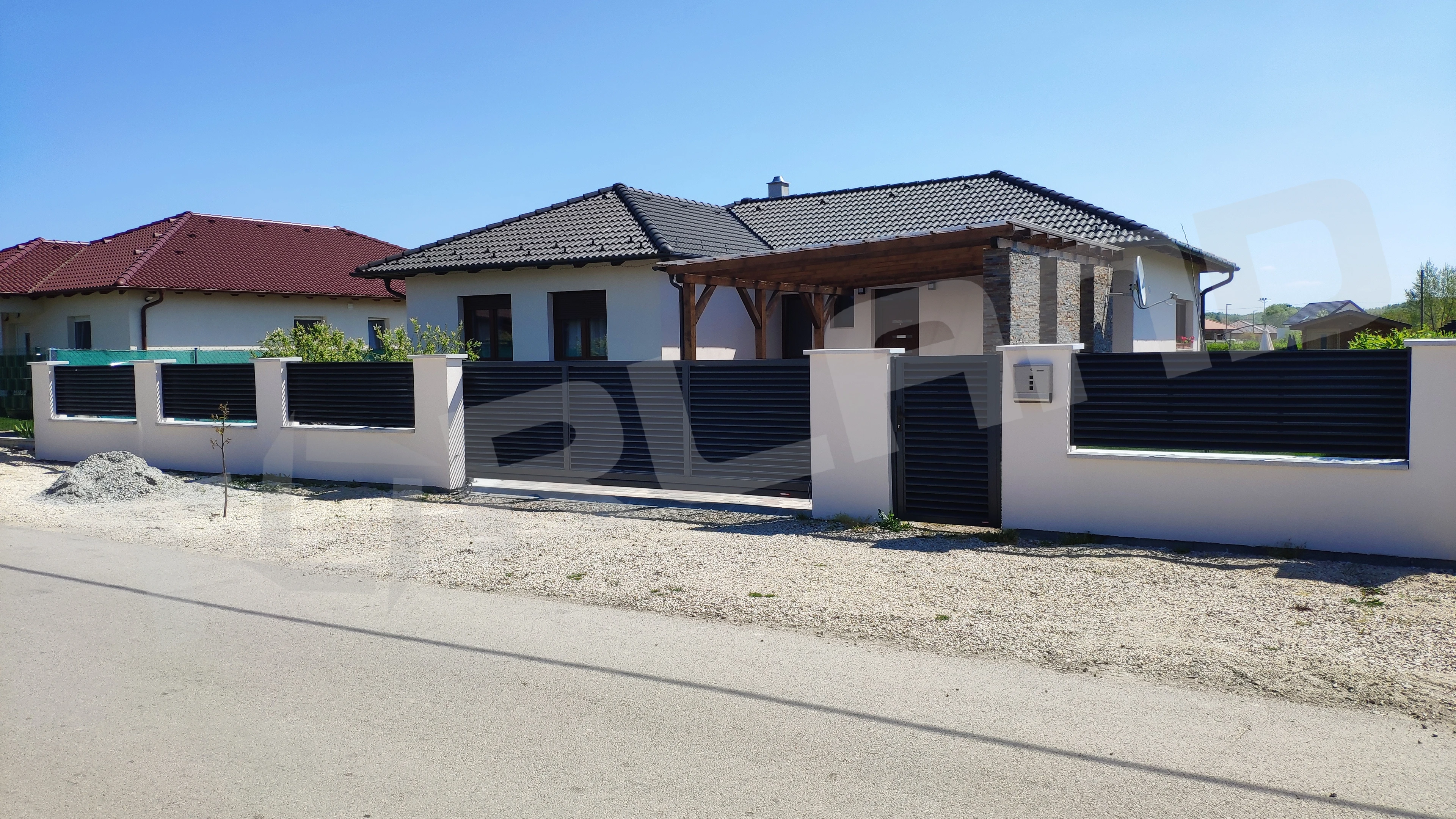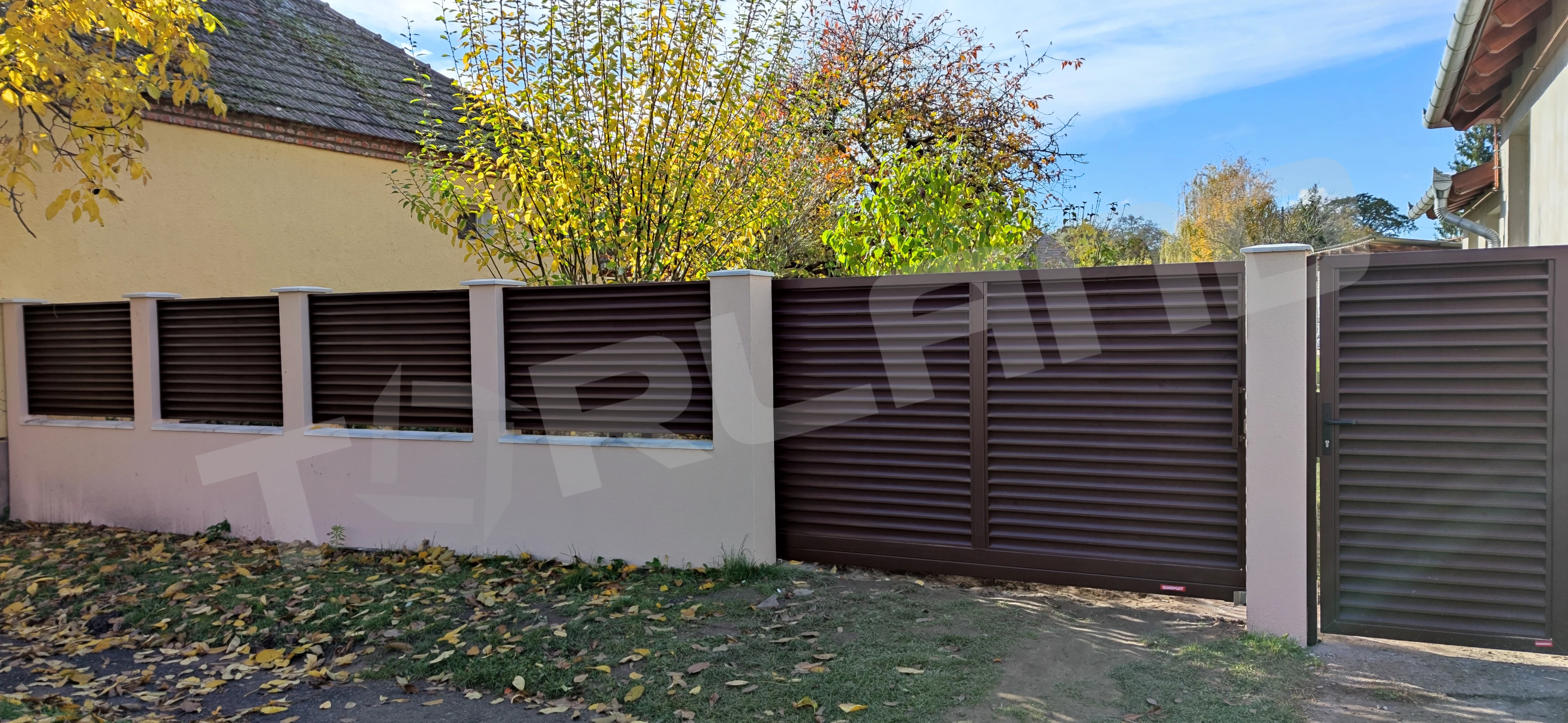 Kapuk tartozékai: lamellák, 80*60 mm méretű keret, zárak, kilincsek, szárnyaskapunál kitámasztók, ütközők