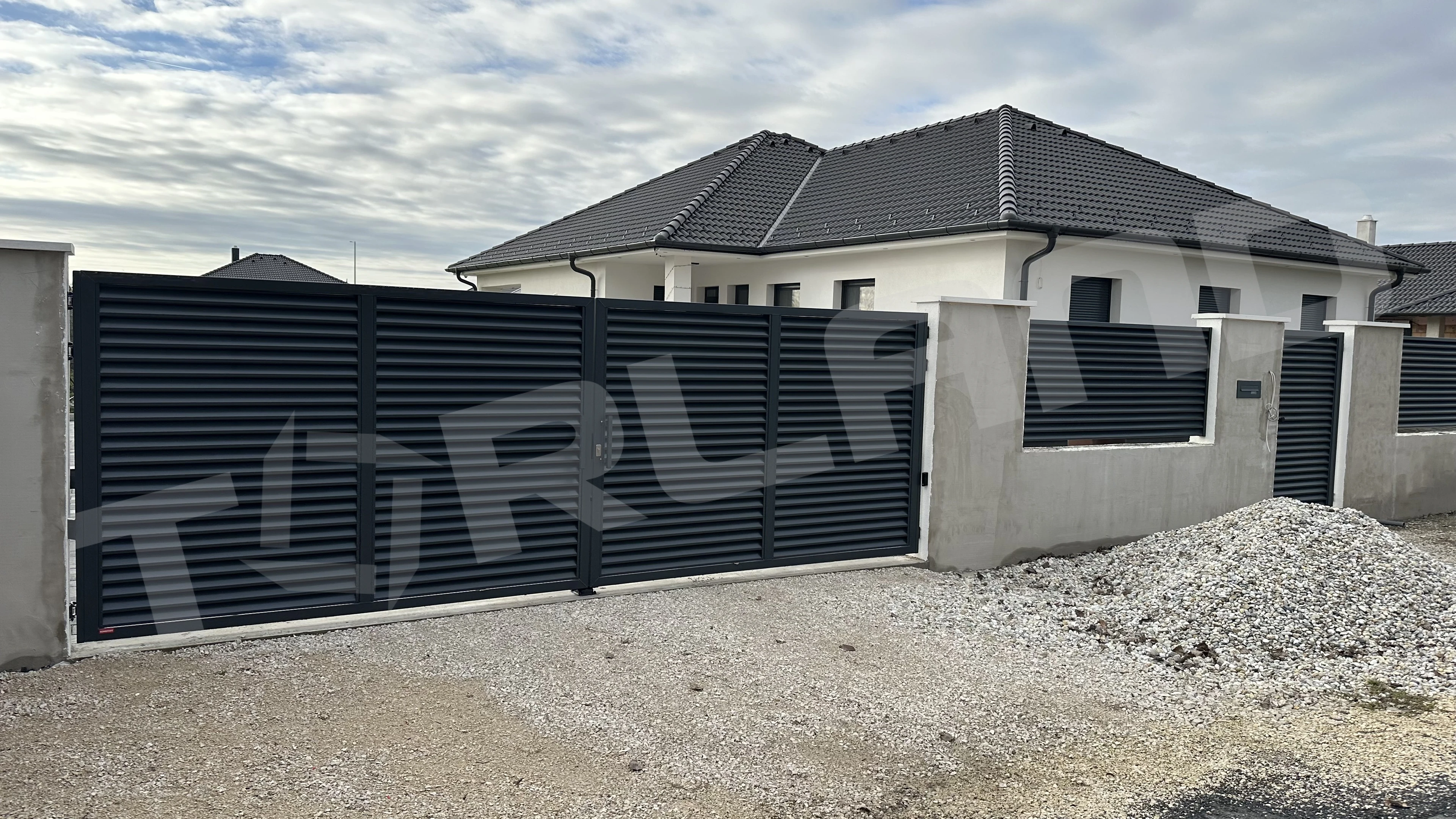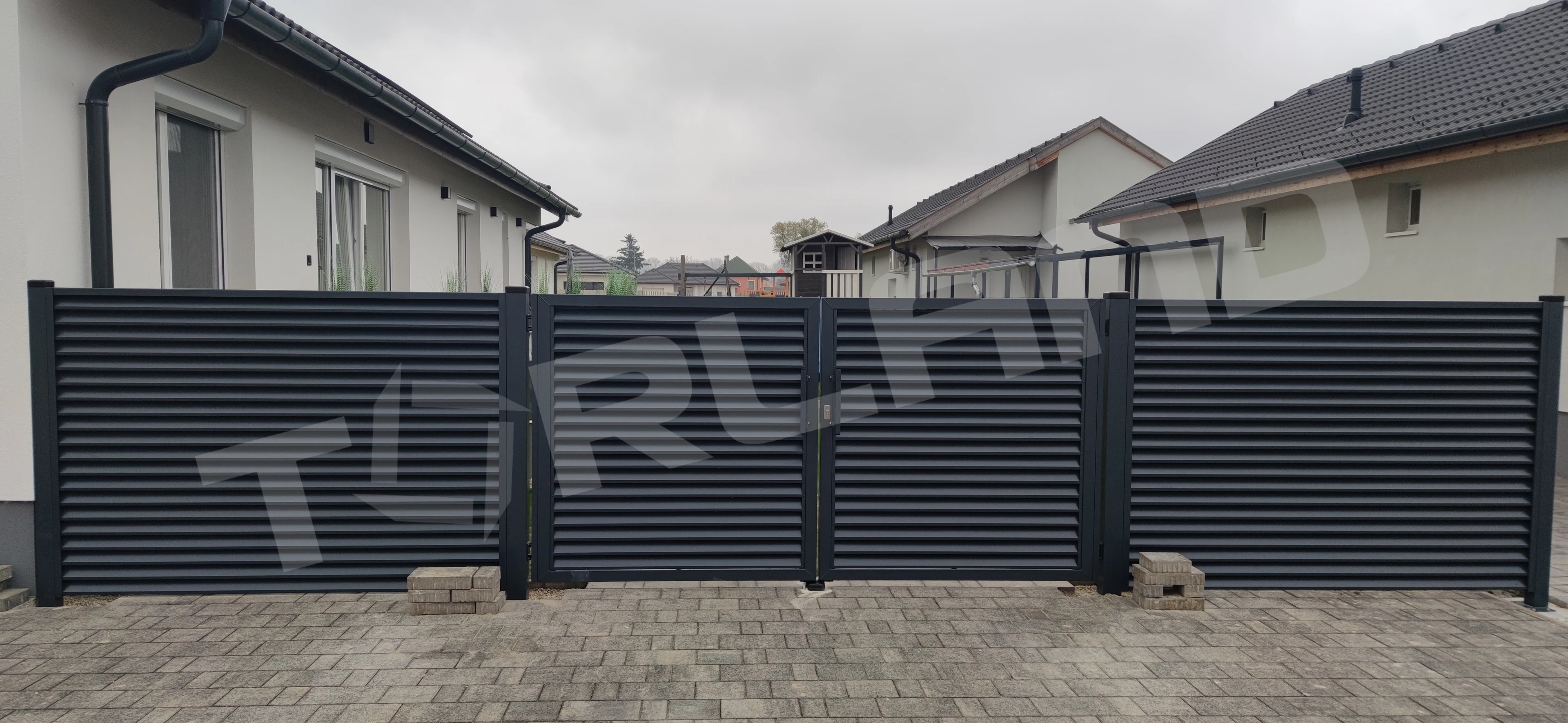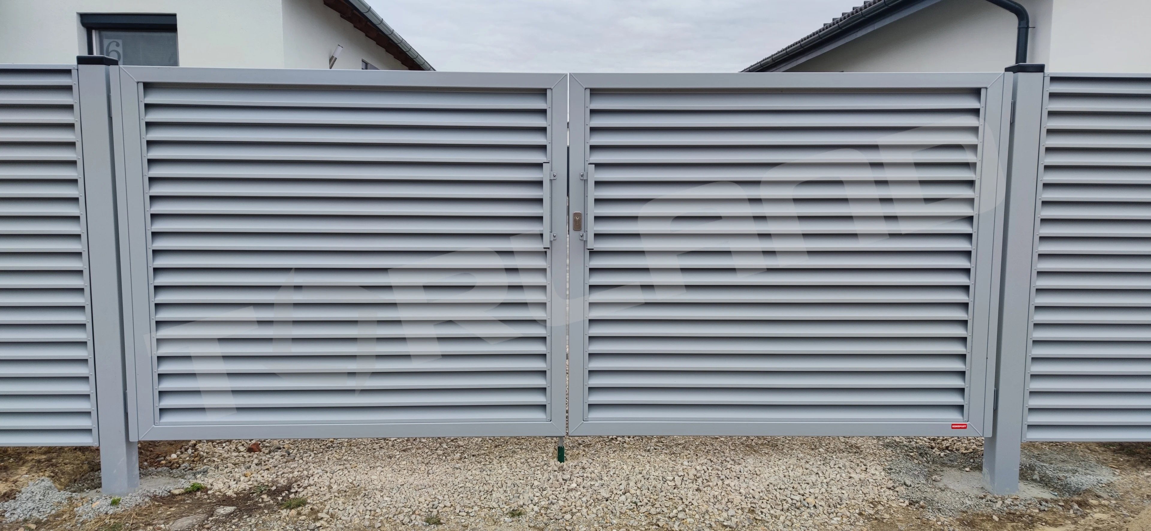 | AluZink lamellás kétszárnyú kapu Magasság/szélesség | 3500 mm | 4000 mm | 4500 mm | 5000 mm | 5500 mm |